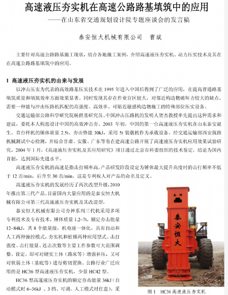 高速液壓夯實機(jī)在高速公路路基填筑中的應(yīng)用